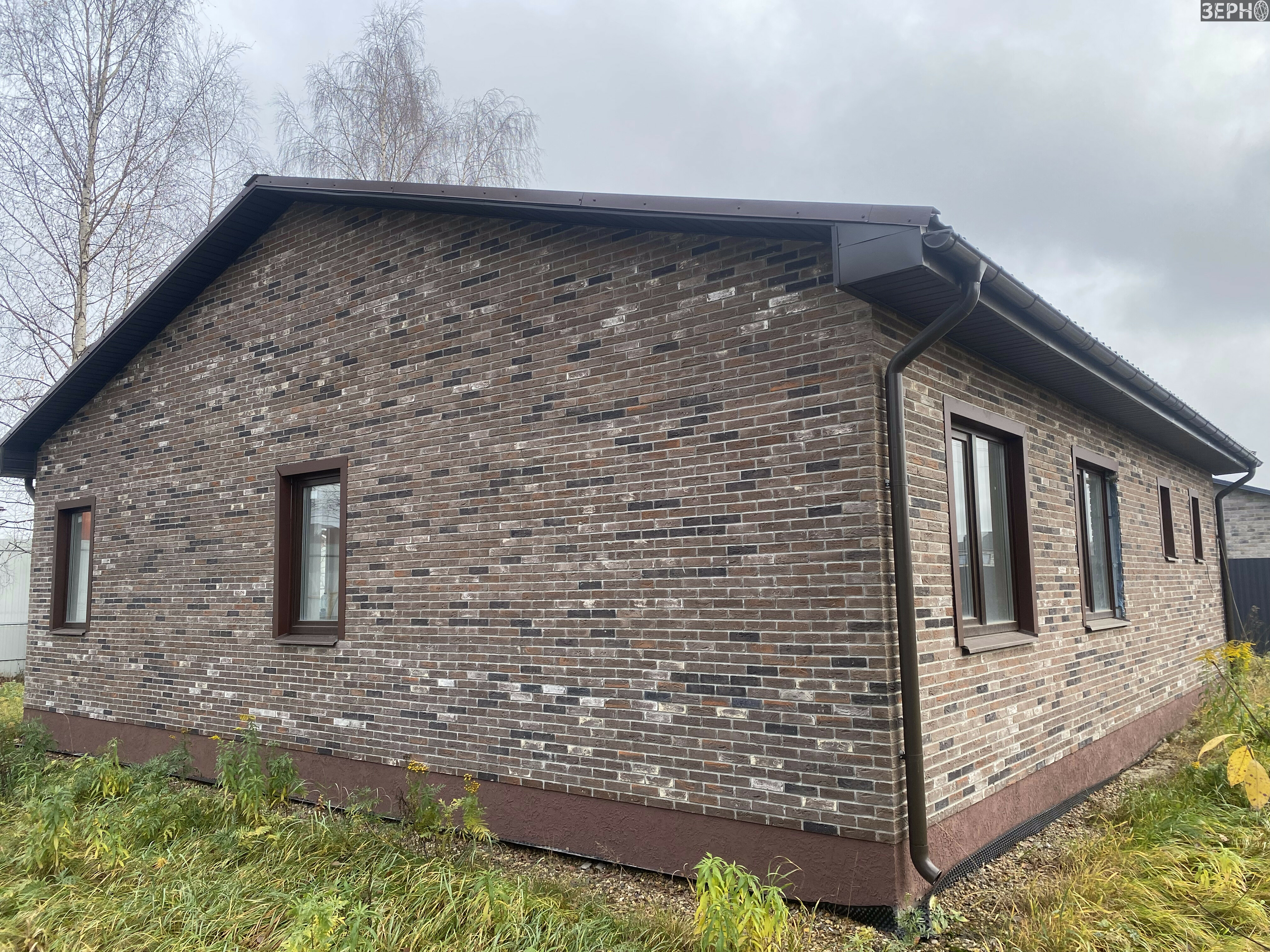 Фасад утеплен пеноплексом и облицован клинкерным кирпичом, надёжная крыша – клик фальц.